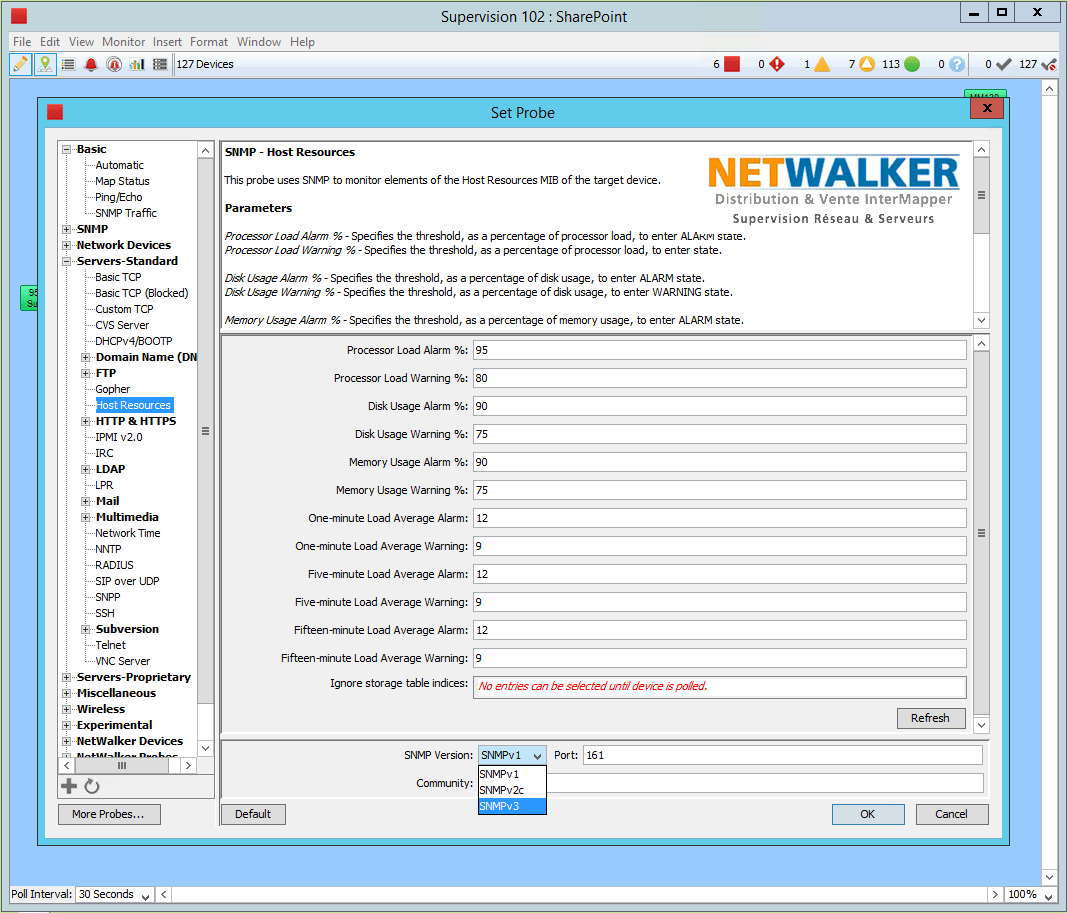Surveiller SharePoint avec SNMP et la probe Host Ressource